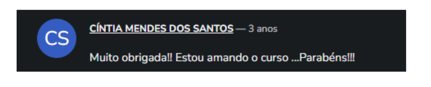 O curso está disponível dentro da Hotmart, a maior empresa de cursos online da América Latina. Lá existe a área de membros, onde podemos conversar através da sessão de comentários, disponível em todas as aulas.